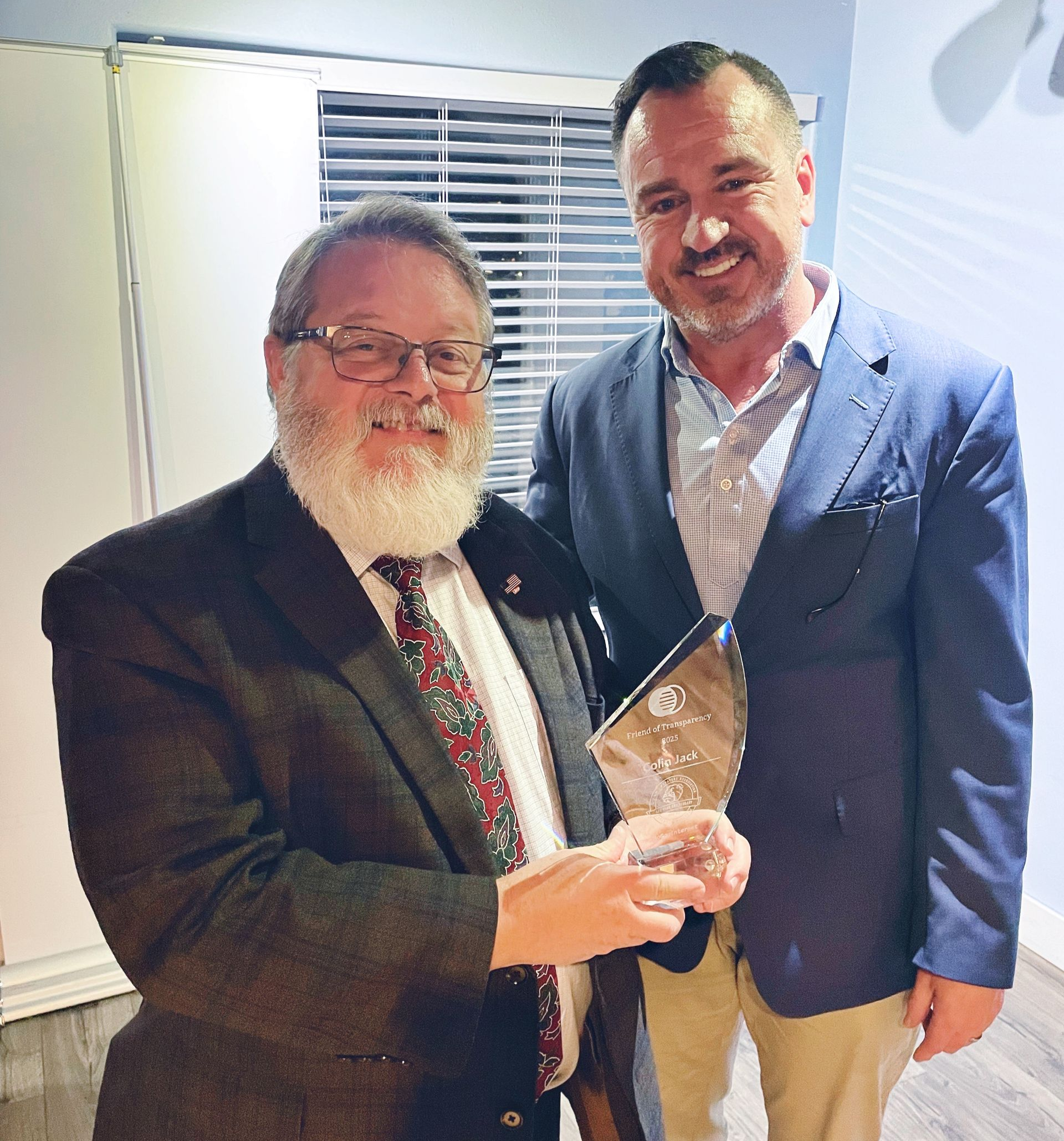 PRESS RELEASE: Representative Colin Jack Receives “Friend of Transparency Award”